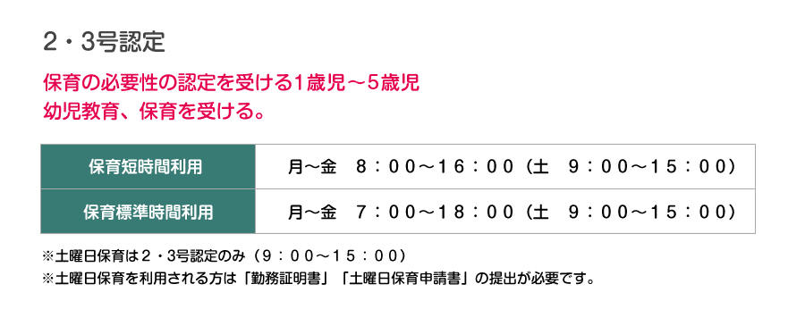 支給認定には、子どもの年齢や保育の必要性に応じて、1号認定から3号認定まで3つの区分があります。